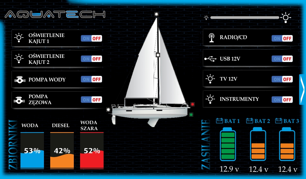 Panel i Monitor 10 cala 16 linii + Zbiorniki i Akumulatory Jacht